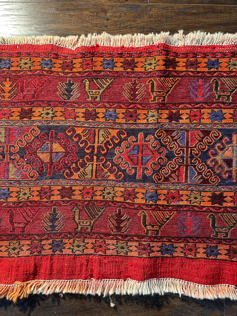SUMAK, RED, ORANGE, PERSIAN, IRAN, HANDMADE, KILIM